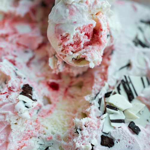 - Chocolate Covered Strawberry: Ice Cream: White Chocolate Ice Cream with Strawberry Swirls & Chocolate Chunks