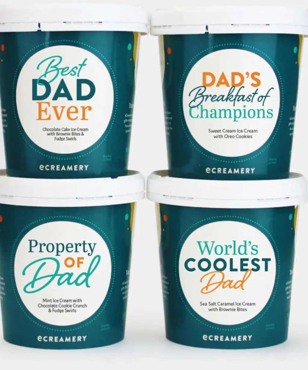 Think of all the times your Dad gave you money for Ice Cream -- Now’s the time to buy some Ice Cream for your Dad! There’s nothing he would enjoy more than a delicious bowl of our premium, hand-churned  Ice Cream. Each of the four pints in this collection features a unique flavor and a fun Father’s Day message.  No “Ding-Ding Man” Ice Cream can touch this!  Dad will love it!
